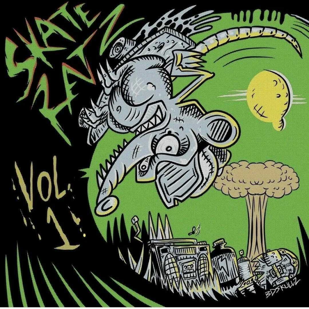 An homage to the old Thrasher Magazine, "Skate Rock" compilation LPs of the '80s, "Skate Ratz Vol. 1" features nine of today's hardest working skate-rock bands. Featuring Too Many Voices, Fastplants, Since We Were Kids, Good Touch, The Hacks, Slashers, Rabid Assault, Disco Assault, and Bing Krosby (featuring Chuck Treece of McRad). Includes a 12-page booklet and cover art by artist Bobbydrawsskullz (The Faction, Pearl Jam, Powell Peralta).