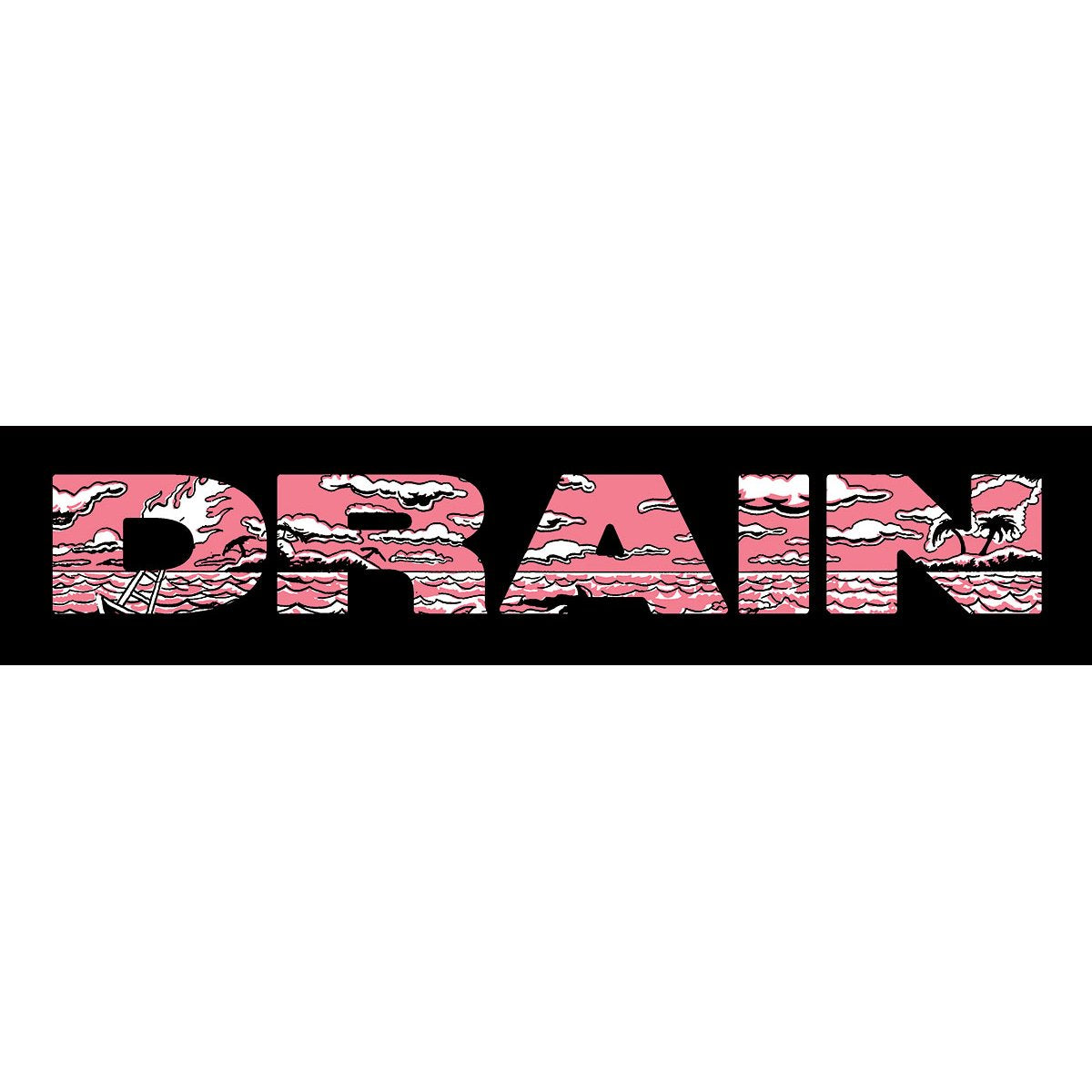 8" x 1.75", three-color, Drain "Logo" vinyl sticker.