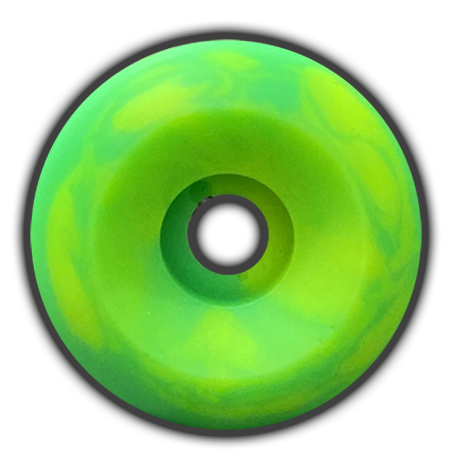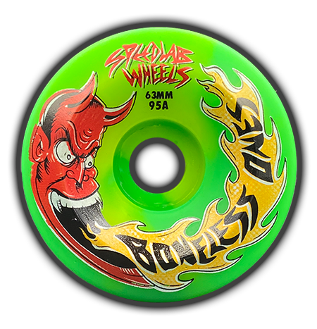 The Boneless Ones formed in 1984, were featured on Thrasher Skate Rock Vol. 3 and released their 1st full length 'Skate for the Devil' in 1986.  After a break they're back and working on a new album.  They asked for a "super slimey" wheel and that's what you have here.  This green & yellow slime wheel is big at 63mm with a not too hard/not too soft duro of 95A which is perfect for all-terrain.  The wheels have angled conical cuts on each side to provide a highly functional classic profile & shape made from the best formulas in the world for ultimate speed & control.  Grab a set & get rad!  Artwork by Bobby Brown.